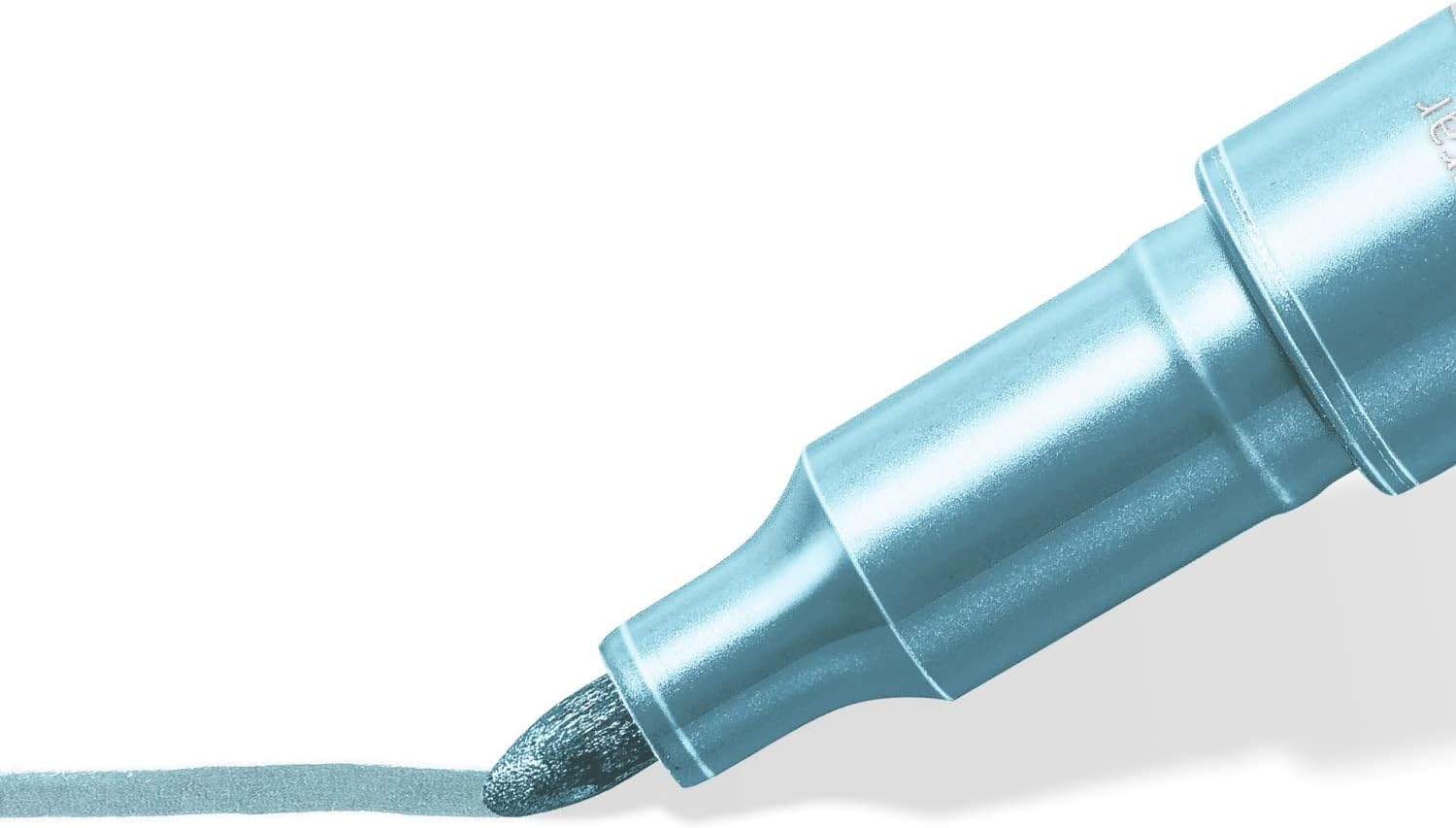 Der STAEDTLER 8323 blau-metallic verleiht Ihren Projekten einen subtilen Glanz und sorgt für opakes, deckendes Schreiben auf hellen sowie dunklen Papieren und Karton. Dieser Metallic Stift verwandelt einfache Skizzen in elegante Akzente – perfekt für Scrapbooking, Grußkarten und kreative Highlights.