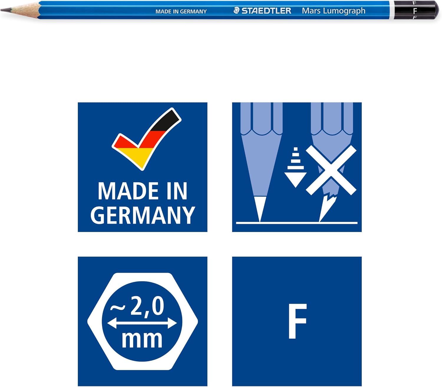 - Vielseitige Anwendung: Ob Schreiben, Zeichnen, Skizzieren oder Schraffieren – der Mars Lumograph 100 F liefert in professionellen grafischen Arbeiten verlässliche Ergebnisse und eine reibungslose Abstimmung zwischen Idee und Umsetzung.
