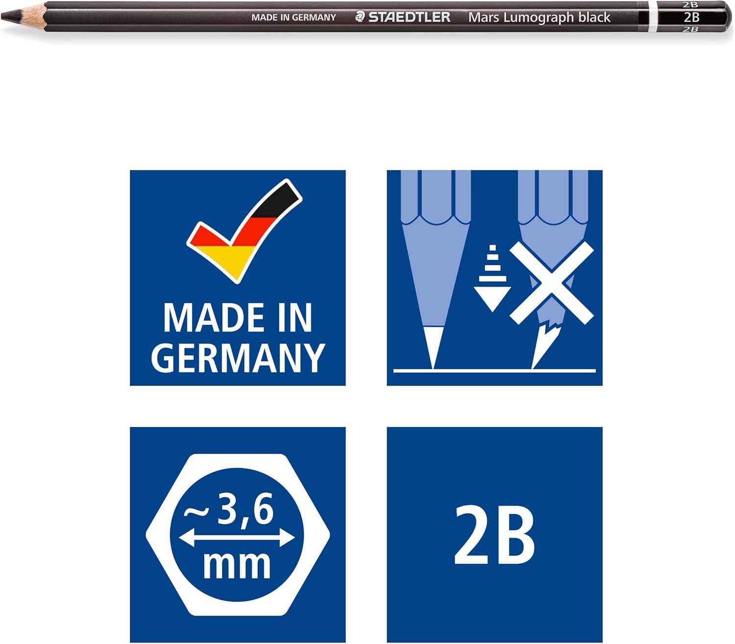 Der Mars Lumograph Black 100B 2B ist mehr als ein Bleistift – er ist ein verlässlicher Arbeitskamerad für anspruchsvolle Zeichnungen im Büro- oder Künstlerbedarf. Wenn Präzision, Haltbarkeit und ein markantes, tiefes Schwarzbild für Sie zählen, ist dieser Zeichenbleistift Ihre erste Wahl im Bereich Art Pencils.
