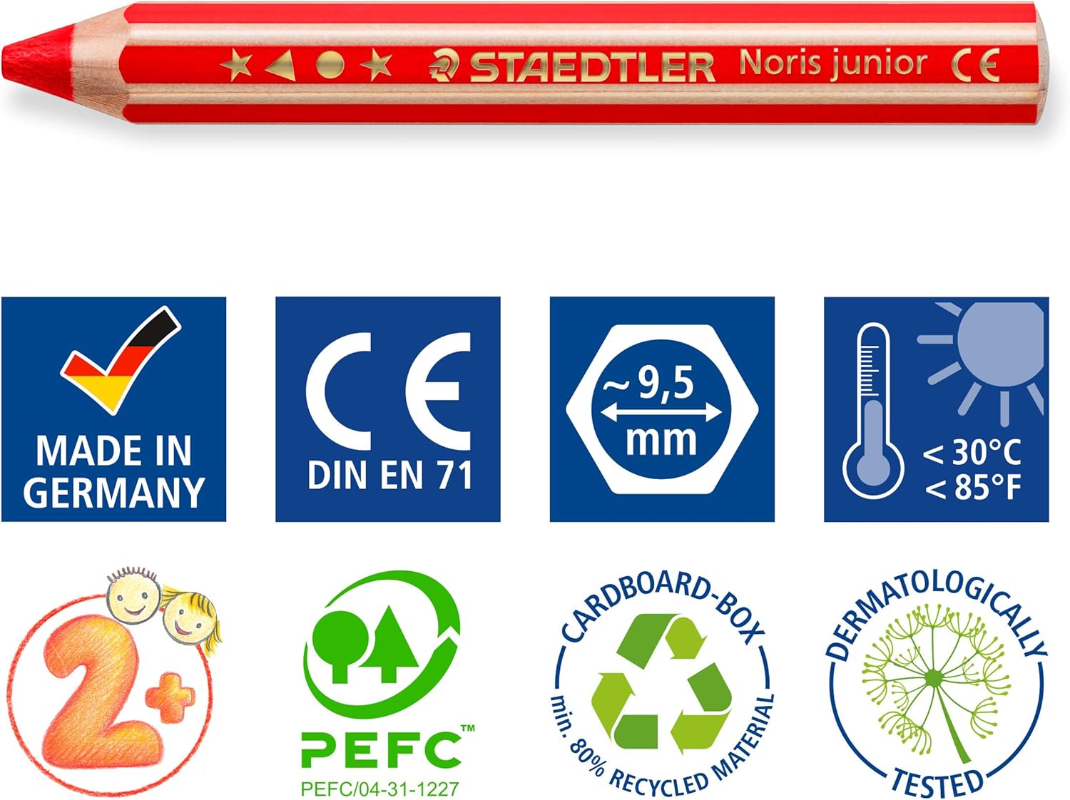 Der perfekte erste Kindermalstift für ungebremste Kreativität 3 in 1: Bunt-, Wachsmal- und Aquarellstift in einem Leuchtende Farben für Papier, Karton, Glas und vieles mehr, sogar für dunkle Oberflächen Softer Abstrich in strahlenden Farben Das kompakte Format ist perfekt für kleine Kinderhände Extra bruchsicher durch die sehr dicke Mine Erhältlich in 20 Farben Einzelstift in bis zu 8 Farben
