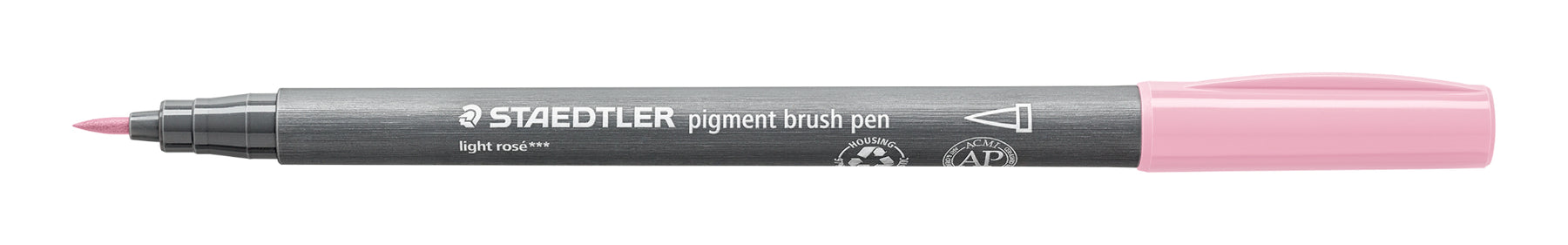 Der pigment brush 371 hellrosa von STAEDTLER vereint die Präzision eines Filzstifts mit der Vielseitigkeit eines Pinselstifts. Die innovative Multi Ink Tinte sorgt für brillante Farben, extreme Lichtbeständigkeit und langanhaltende Ergebnisse – perfekt für feine Details, Handlettering und farbintensive Skizzen.