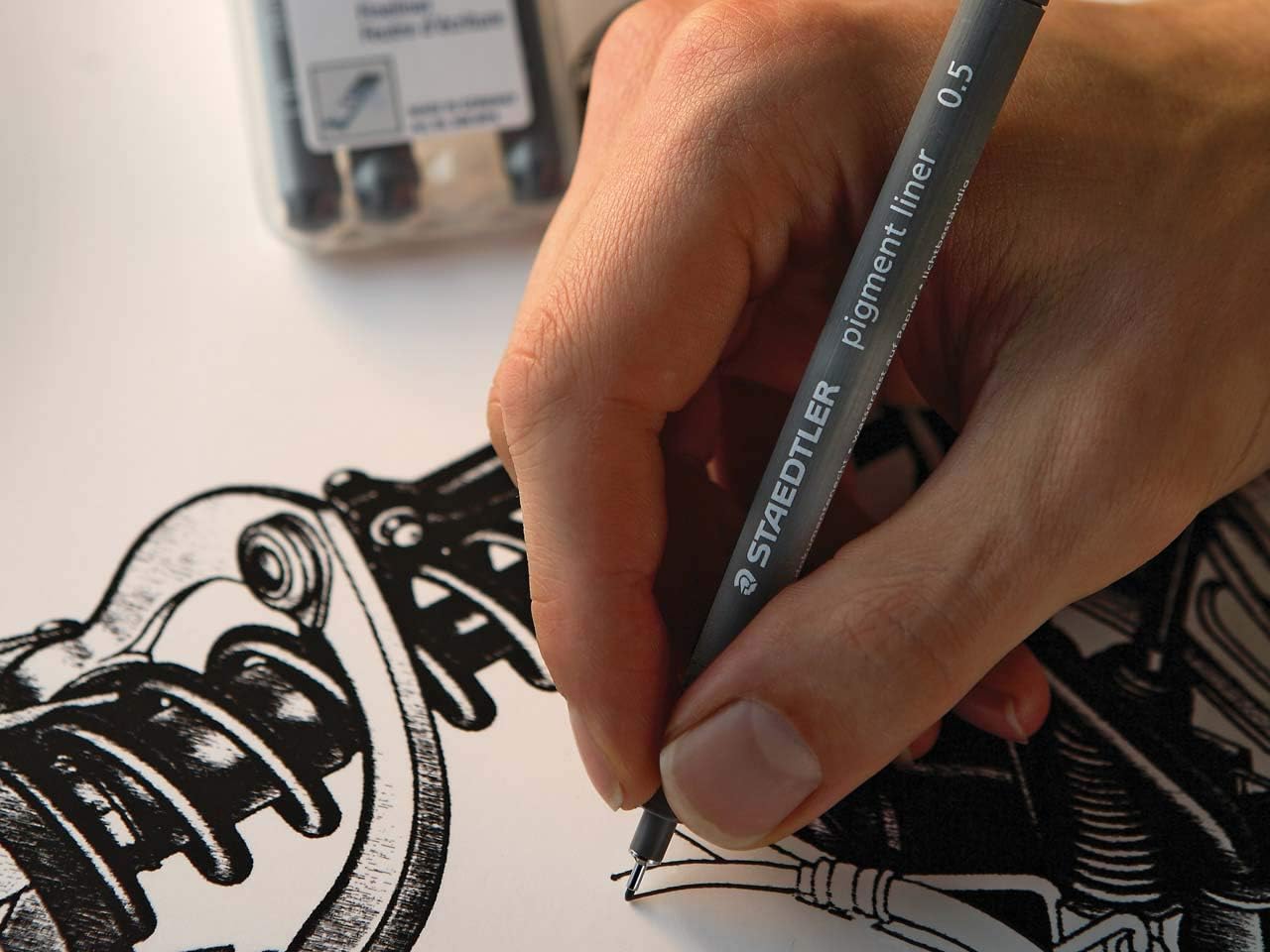 - Radierbar auf Zeichenpapier: Im Gegensatz zu vielen Pigmentlinern lässt sich die schwarze Tinte auf Zeichenpapier leicht radieren, sodass Korrekturen unkompliziert möglich sind – ideal für Entwürfe und kreative Experimente.