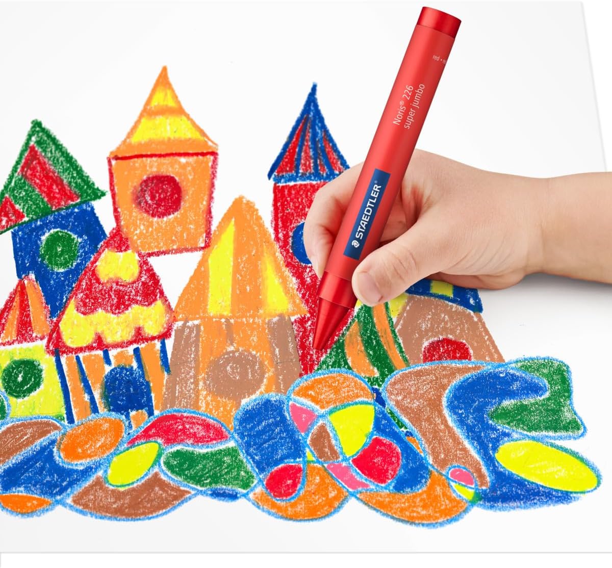 < p >Die Noris® super jumbo 226 multi-color ist der ideale Begleiter für kleine Künstlerinnen und Künstler, die big denken und groß malen möchten. Speziell für Kinderhände entwickelt, bietet der Jumbo-Durchmesser von ca. 14 mm angenehme Griffigkeit und ermöglicht souveräne, großflächige Farbläufe – perfekt für die ersten kreativen Meilensteine zuhause, in der Kita oder in der Schule.< /p >
