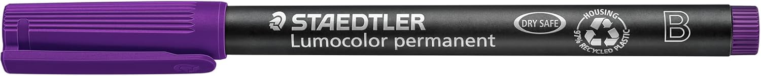Der Lumocolor® 314 B violett von STAEDTLER ist der zuverlässige Universalschreiber für Schule, Studium und Büro. Er beschriftet zuverlässig fast alle Oberflächen – von Overhead-Folien und Kunststoff bis Glas – und hinterlässt dauerhaft klare Markierungen, die auch im Alltag bestehen bleiben. Die permanente, geruchsarme Tinte trocknet sekundenschnell, wodurch Verschmieren selbst bei schnellem Schreiben minimiert wird. Ideal für Linkshänder: Der Tintenfluss bleibt konstant, auch wenn du zügig Notizen machst. Dank DRY SAFE kann der Stift tagelang offen liegen, ohne einzutrocknen. Schaft und Kappe aus PP sorgen für lange Lebensdauer und robuste Alltagsverlässlichkeit.