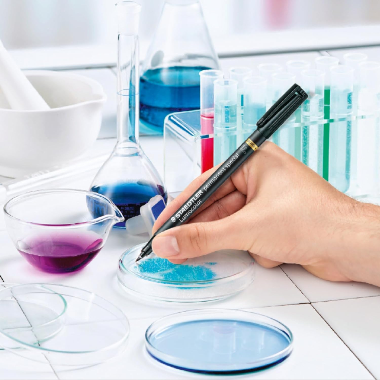 Farbe: Rot. Typ: Permanent-Spezialstift. Schreiben auf: beschichtete Oberflächen, Nanobeschichtungen, optische Gläser, Labor-Glas, Silikon, laminierte Folien, Gläser der neuesten Generation. Eigenschaften: wisch- und wasserfest, sekundenschnell trocken, farbintensiv, geruchsarm, extrem lichtbeständig. Besonderheit: linkshänderfreundlich. Marke: STAEDTLER – präzise Qualität für professionelle Kennzeichnungen.