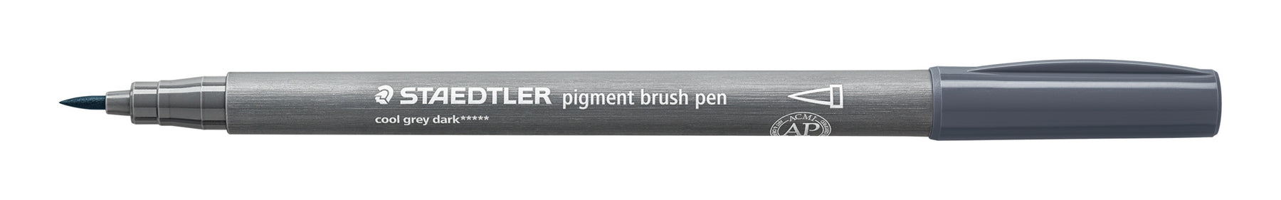 Der pigment brush 371 kaltgrau dunkel von STAEDTLER überzeugt durch Premium-Pigmente und eine moderne Fasermaler-Technik. Diese Marke steht seit Jahrzehnten für Qualität im Office-Sortiment und liefert extreme Lichtbeständigkeit, außergewöhnliche Farbbrillanz und ein schmierfreies Übermalen, sobald die Tinte getrocknet ist – perfekt für feine Linien und präzise Details.
