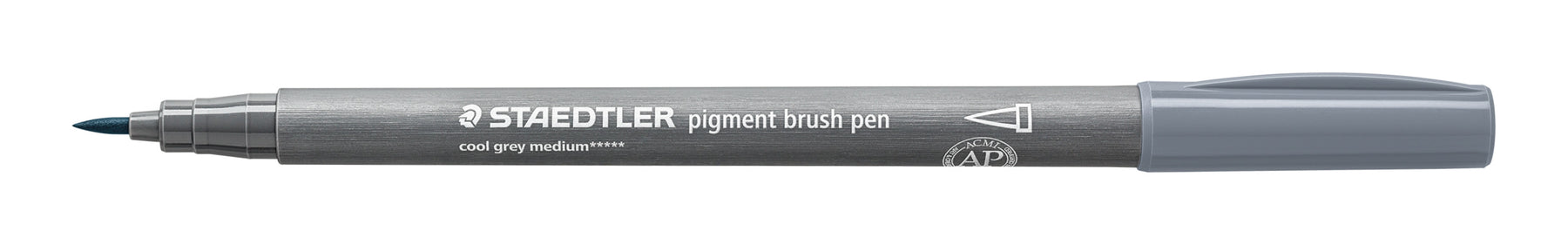 Der pigment brush 371 kaltgrau medium von STAEDTLER ist der ideale Fasermaler für feine Zeichnungen, Skizzen und klare Schriftzüge. Mit der Multi Ink Tinte und Premium-Pigmenten bietet er extreme Lichtbeständigkeit, außergewöhnliche Farbbrillanz und ein schmierfreies Übermalen, sobald die Tinte getrocknet ist. Die Tinte schlägt nicht durchs Papier und blutet nicht, sodass saubere Linien auf verschiedensten Oberflächen entstehen. Dank permanenter, wasserfester Tinte ist er vielseitig einsetzbar – ob auf Papier, Karton, Glas oder Leinwandoberflächen. Die Marke STAEDTLER steht seit Jahrzehnten für Präzision, Qualität und verlässliche Ergebnisse im Bürobedarf.