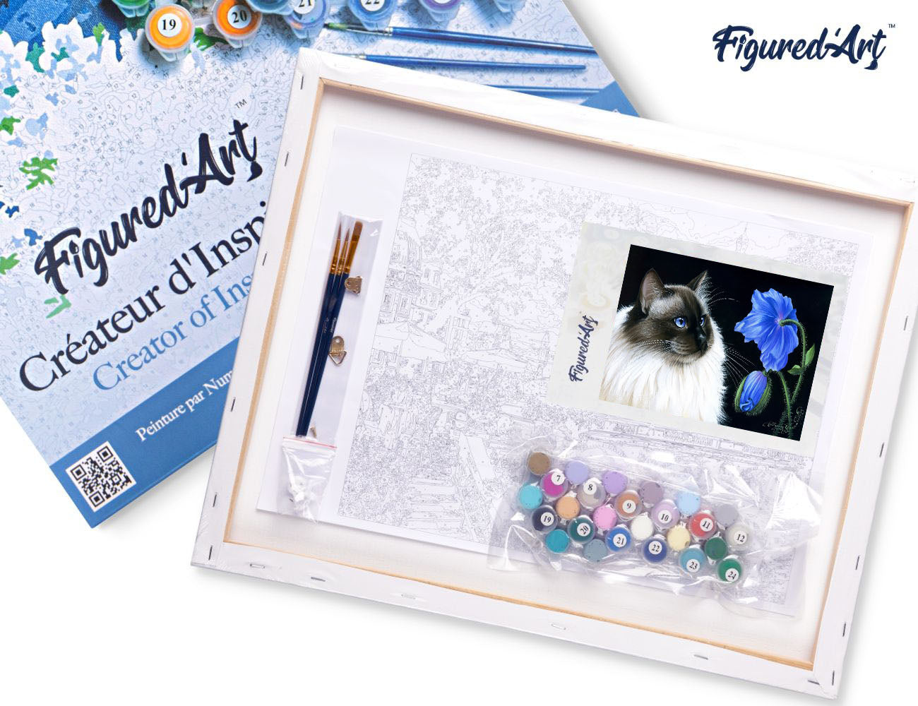 Erleben Sie mit Figured'Art Malen nach Zahlen 40x50cm auf Keilrahmen gespannt Katze und Blume eine beruhigende Kreativpause, die schnell zu einem fertigen Kunstwerk führt. Das renommierte Figured'Art-Label steht für hochwertige Komplett-Sets, die sowohl Einsteiger als auch erfahrene Hobbykünstler begeistern.