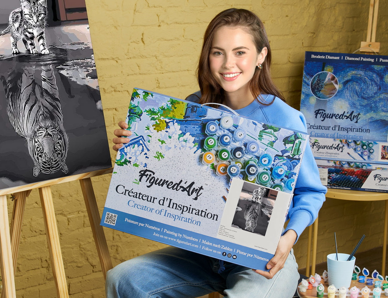 Figured’Art steht für hochwertige Komplett-Sets, die alles Nötige in einem Paket liefern. Jedes Set enthält eine vorgedruckte, nummerierte Leinwand, vorgemischte Acrylfarben, ein Pinselset und je nach Modell einen Holzrahmen oder Keilrahmen. Einfach Felder entsprechend der Nummern ausmalen und Schritt für Schritt ein fertiges Kunstwerk entstehen lassen – ohne Mischen oder Rätselraten.
