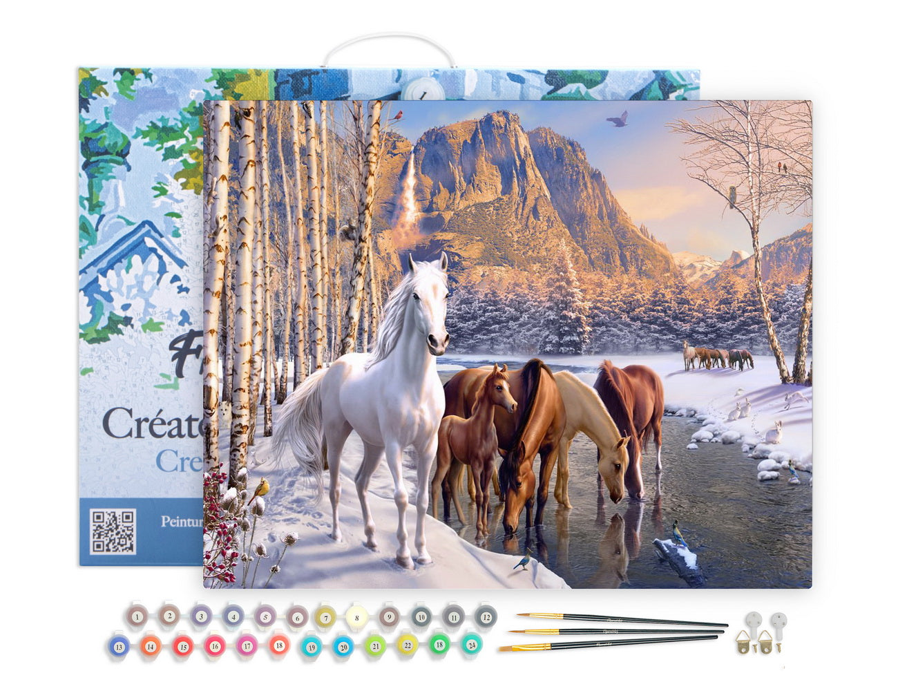 Figured'Art Malen nach Zahlen 40x50cm auf Keilrahmen gespannt Pferde im Winter