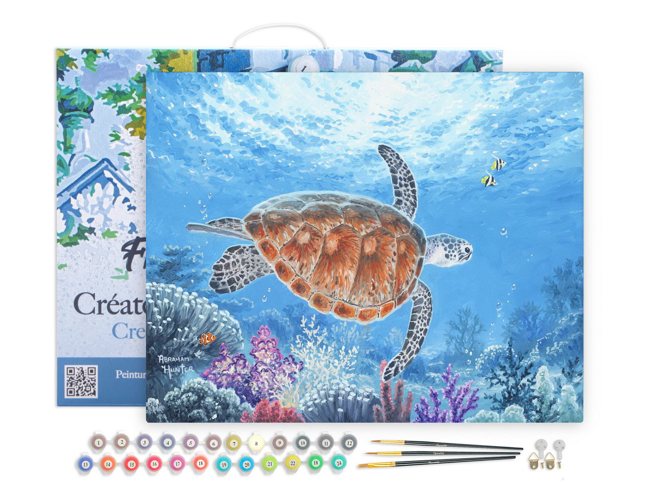 Dieses hochwertige Komplett-Set von Figured'Art enthält alles, was Sie zum Loslegen benötigen: eine vorgedruckte und nummerierte Leinwand, perfekt auf die Farben abgestimmte vorgemischte Acrylfarben, ein Pinselset in verschiedenen Größen und je nach Variante einen Holzrahmen bzw. Keilrahmen. Füllen Sie einfach die Felder mit der passenden Farbe aus und beobachten Sie, wie Ihre Schildkröte lebendig wird.
