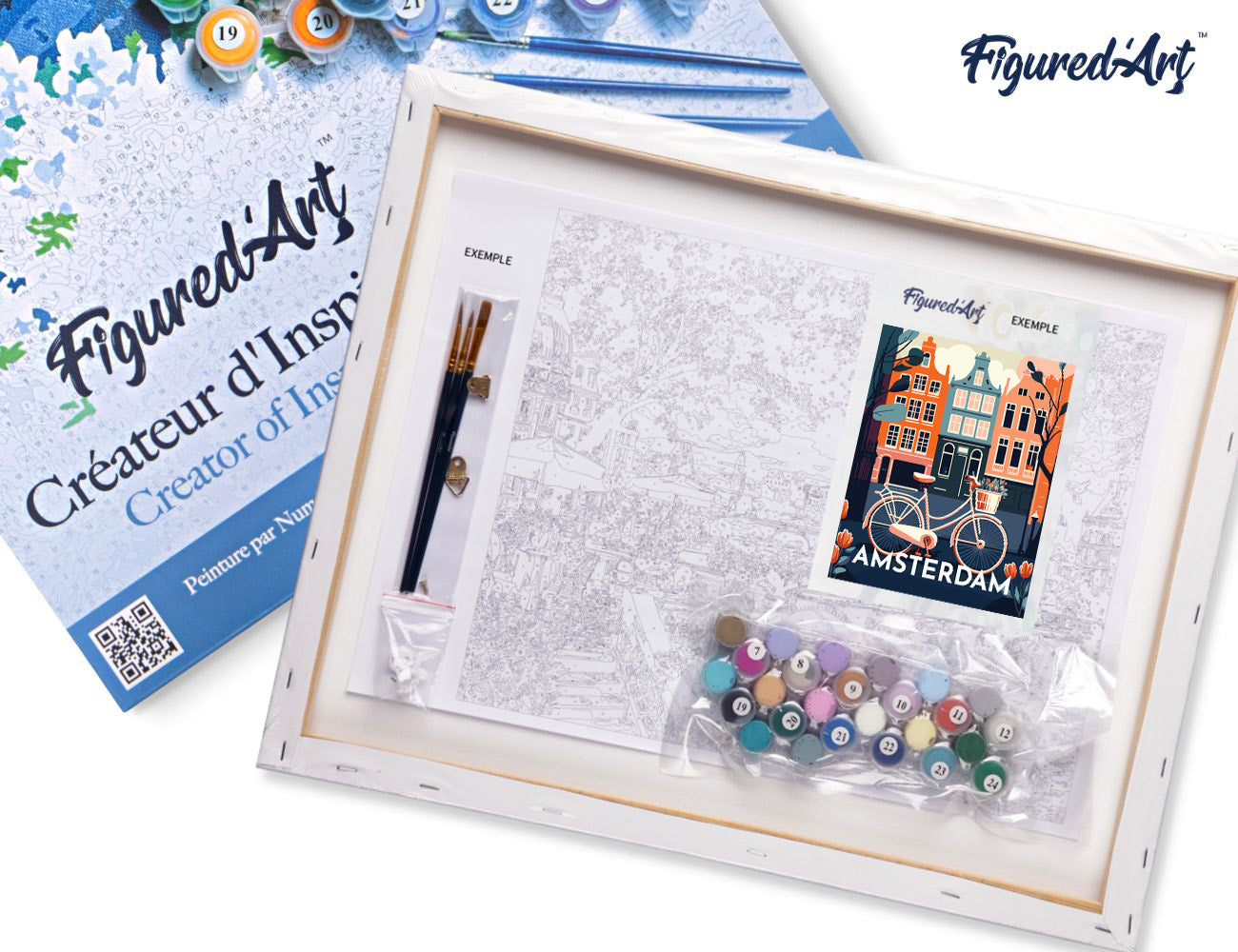 Malen nach Zahlen 40x50cm auf Keilrahmen gespannt Figured’Art Reiseplakat Amsterdam