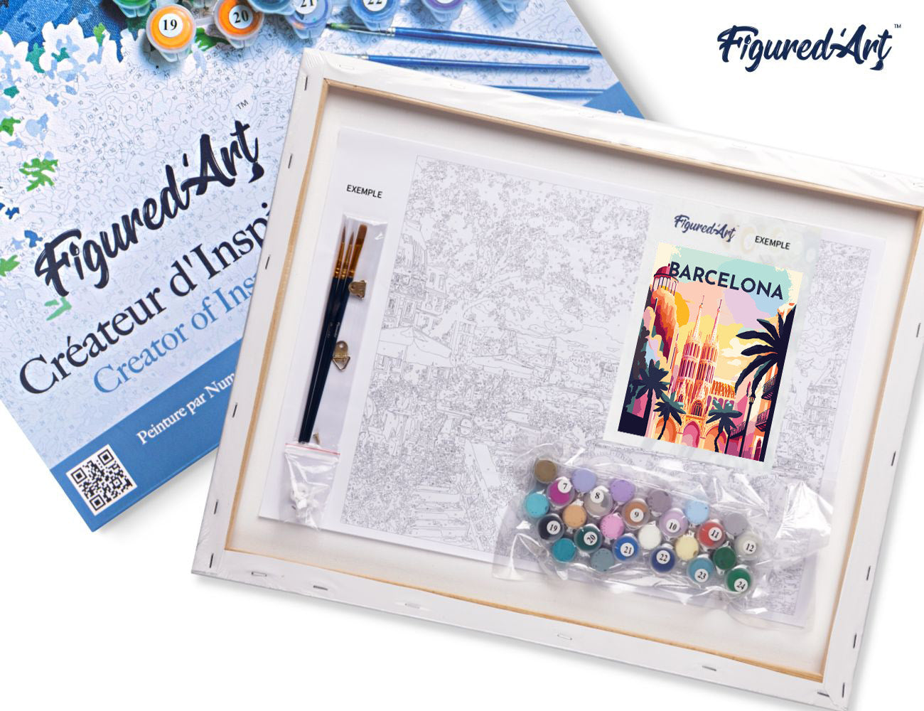 Malen nach Zahlen 40x50cm auf Keilrahmen gespannt Figured’Art Reiseplakat Barcelona