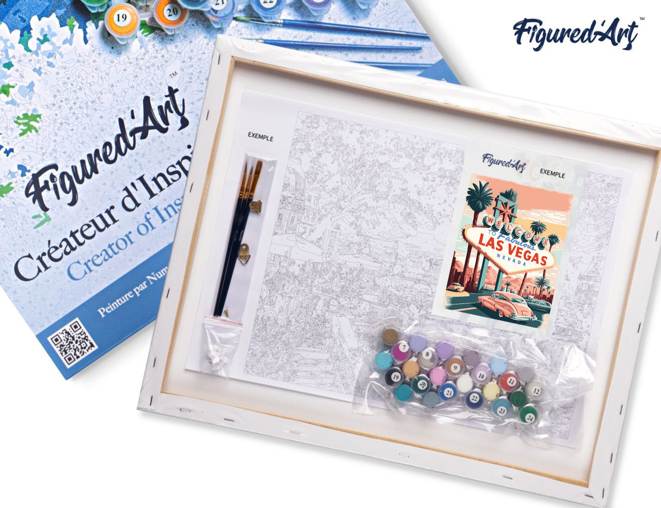 Malen nach Zahlen 40x50cm auf Keilrahmen gespannt Figured’Art Reiseposter Las Vegas