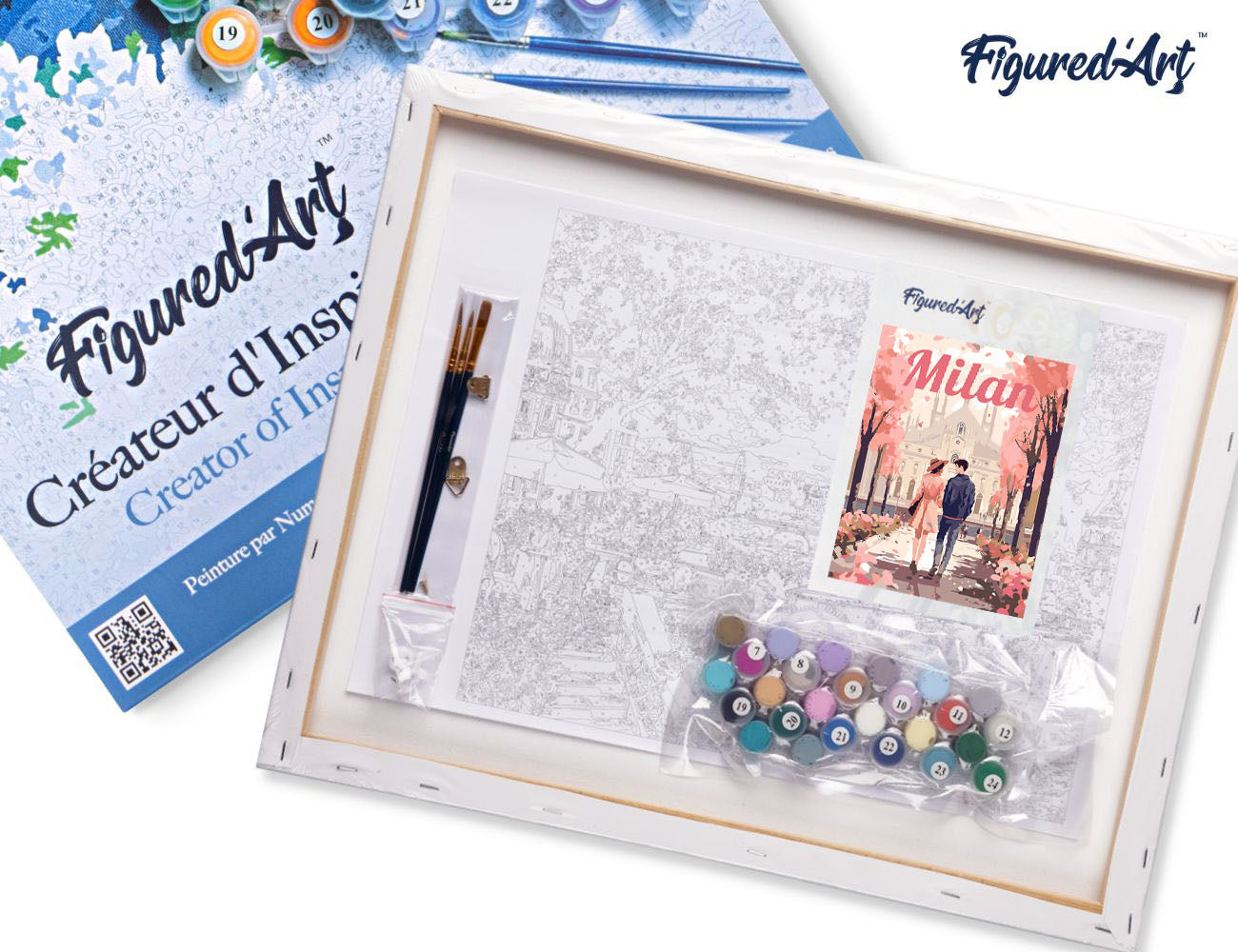 Malen nach Zahlen 40x50cm auf Keilrahmen gespannt Figured’Art Reiseposter Mailand in voller Blüte