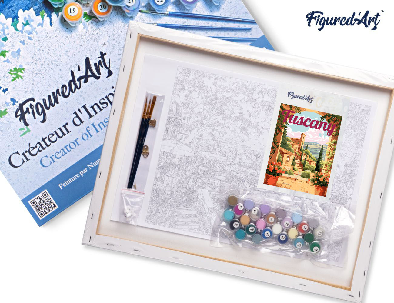 Malen nach Zahlen 40x50cm auf Keilrahmen gespannt Figured’Art Reiseposter Toskana in voller Blüte