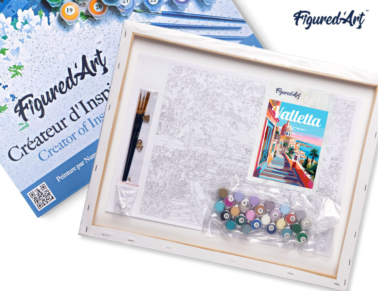 Malen nach Zahlen 40x50cm auf Keilrahmen gespannt Figured’Art Reiseposter Valletta Malta