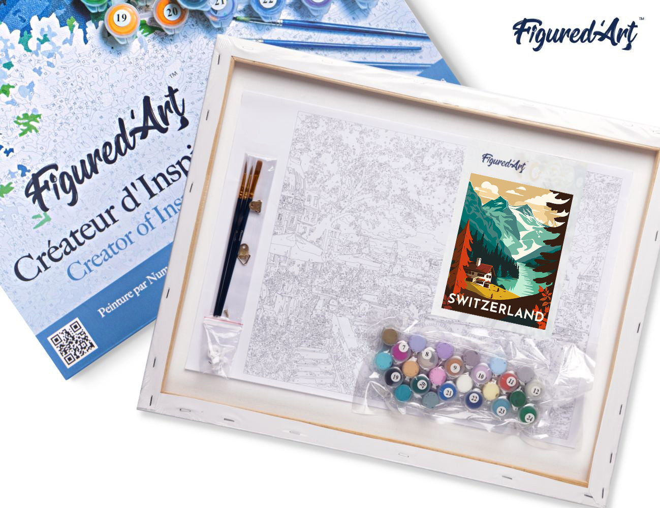 Malen nach Zahlen 40x50cm auf Keilrahmen gespannt Figured’Art Vintage-Poster Bern