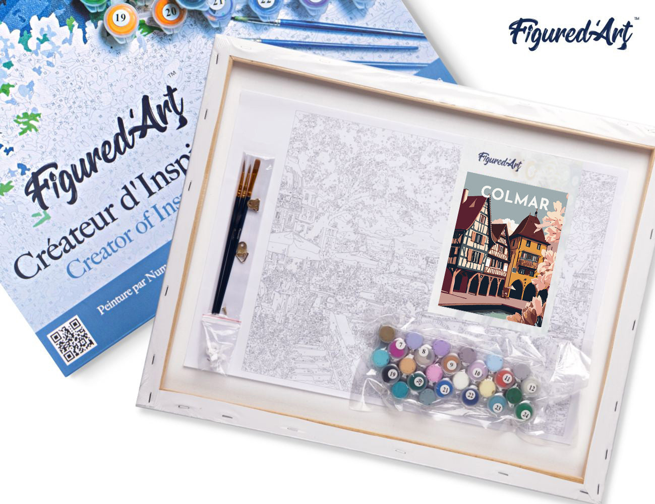 Malen nach Zahlen 40x50cm auf Keilrahmen gespannt Figured’Art Vintage-Poster Colmar