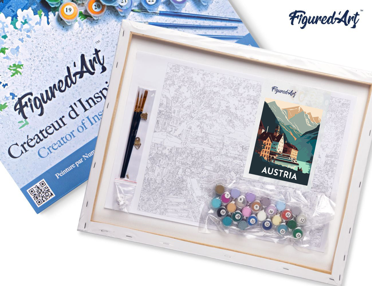 Malen nach Zahlen 40x50cm auf Keilrahmen gespannt Figured’Art Vintage-Poster Hallstatt