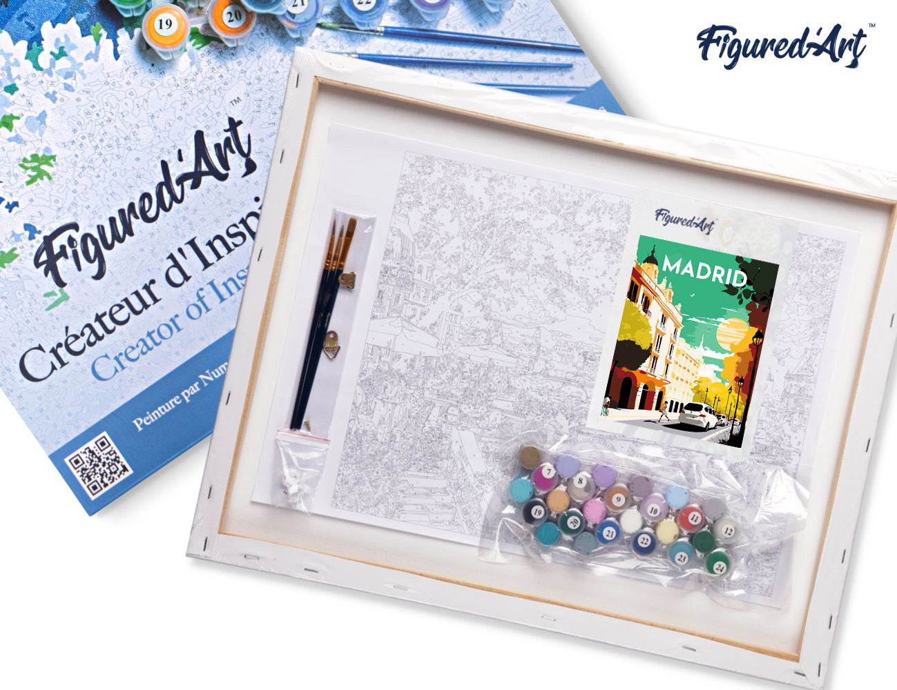 Malen nach Zahlen 40x50cm auf Keilrahmen gespannt Figured’Art Vintage-Poster Madrid