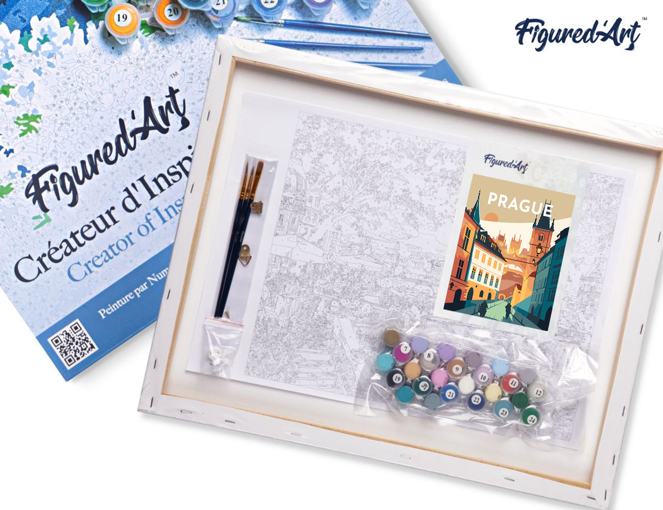 Malen nach Zahlen 40x50cm auf Keilrahmen gespannt Figured’Art Reiseposter Prag in voller Blüte