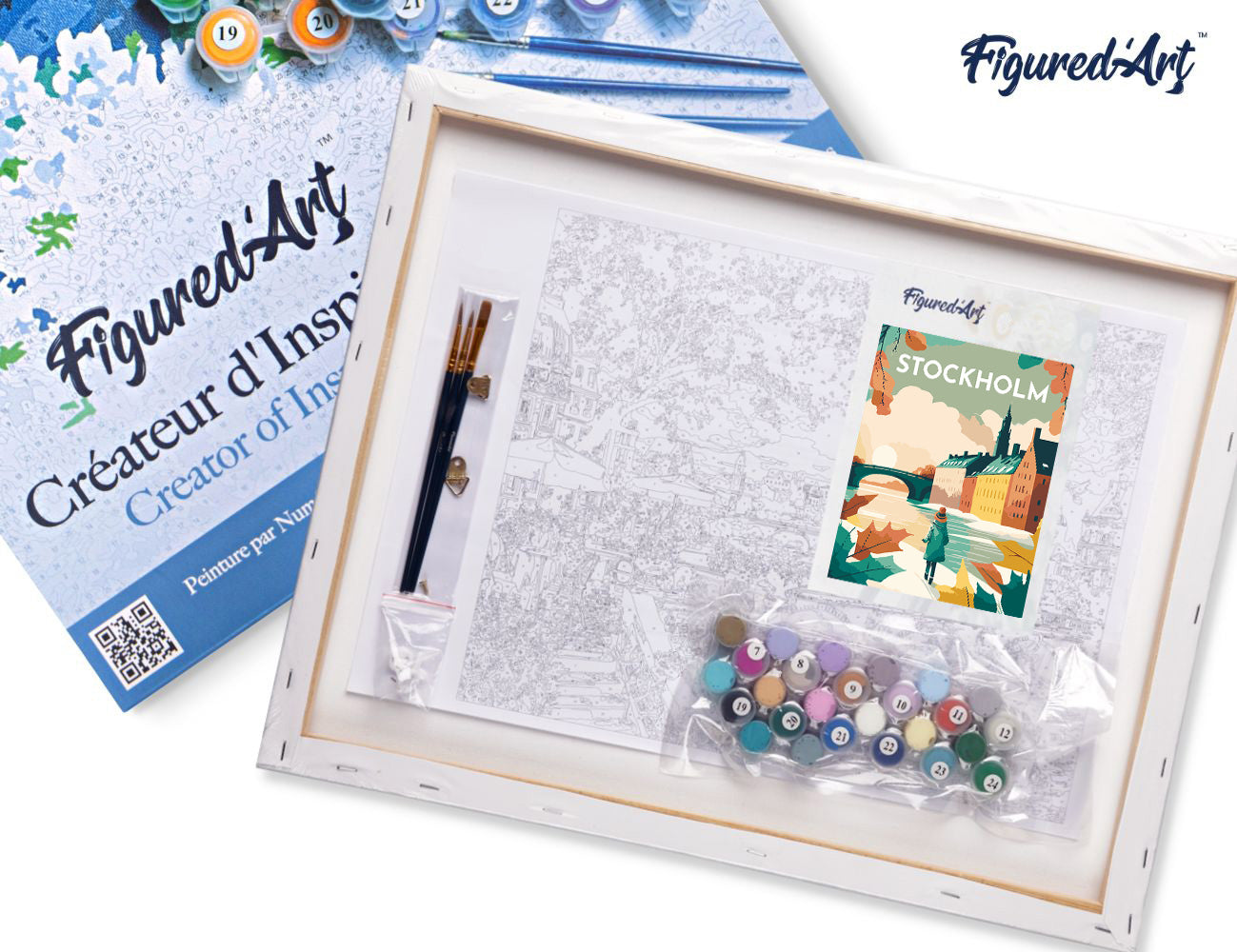 Malen nach Zahlen 40x50cm auf Keilrahmen gespannt Figured’Art Vintage-Poster Stockholm