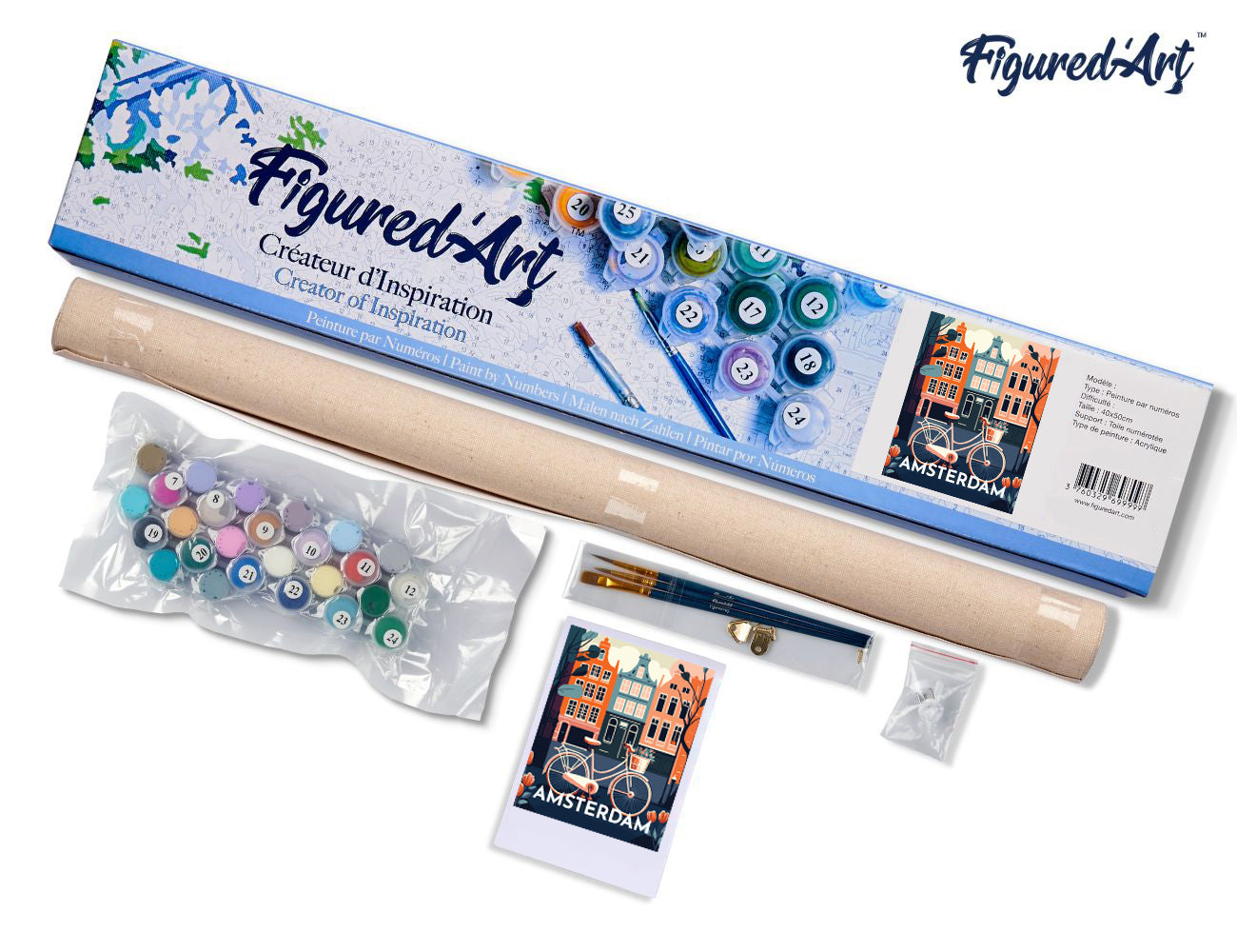 Malen nach Zahlen 40x50cm ohne Keilrahmen Figured’Art Reiseplakat Amsterdam