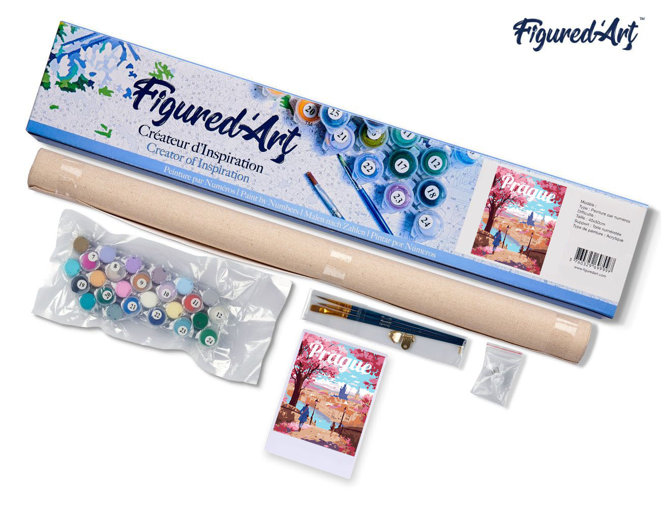 Malen nach Zahlen 40x50cm auf Keilrahmen gespannt Figured’Art Reiseposter Prag in voller Blüte