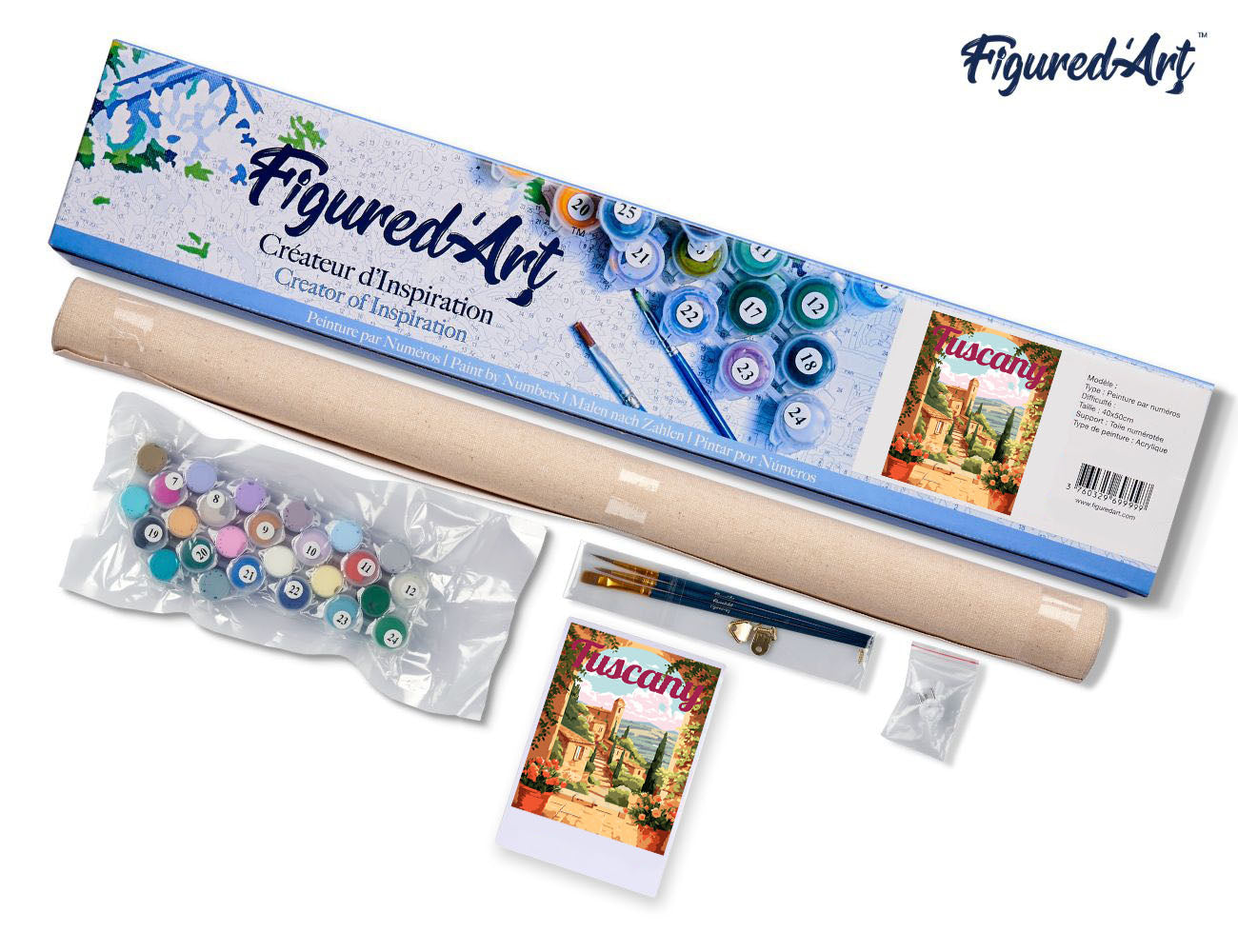 Malen nach Zahlen 40x50cm auf Keilrahmen gespannt Figured’Art Reiseposter Toskana in voller Blüte