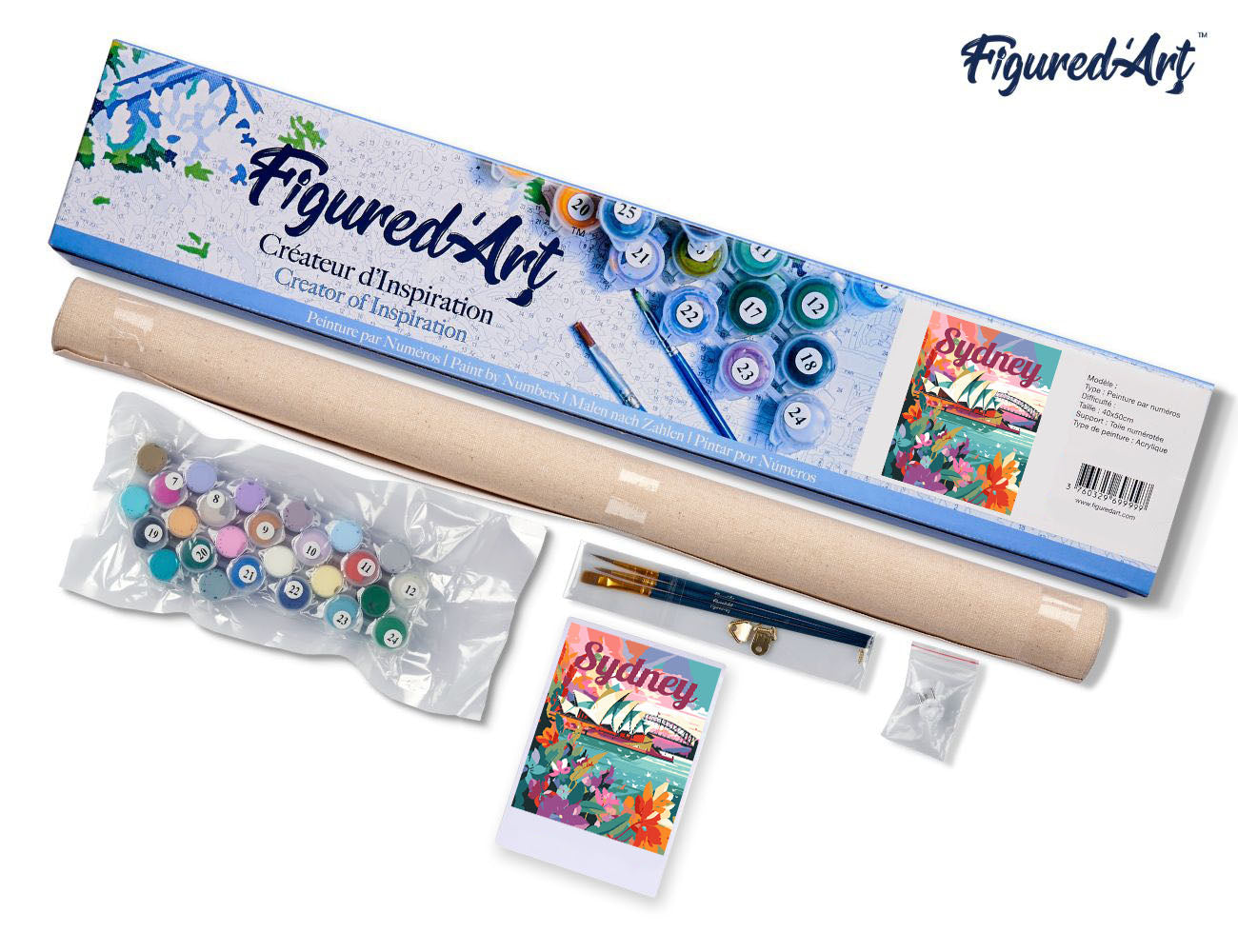 Malen nach Zahlen 40x50cm auf Keilrahmen gespannt Figured’Art Reiseposter Sydney