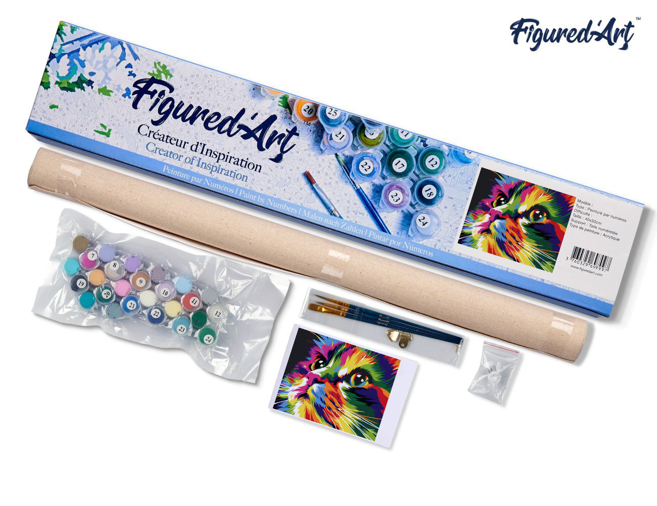 Dieses Malen nach Zahlen Set enthält alles Notwendige um Ihr eigenes Kunstwerk zu verwirklichen: 1 nummerierte Leinwand, 3 Nylon-Pinsel in verschiedenen Grössen, 1 nummeriertes Farbset, 1 Papierausdruck Ihres Motives zur Veranschaulichung, 2 Schrauben + 2 Haken für die Befestigung an die Wand. Grösse 40x50cm, Gerollte Leinwand ohen Rahmen, 20-24 Töpfe mit Acrylfarben, Gewicht: 0.3kg.