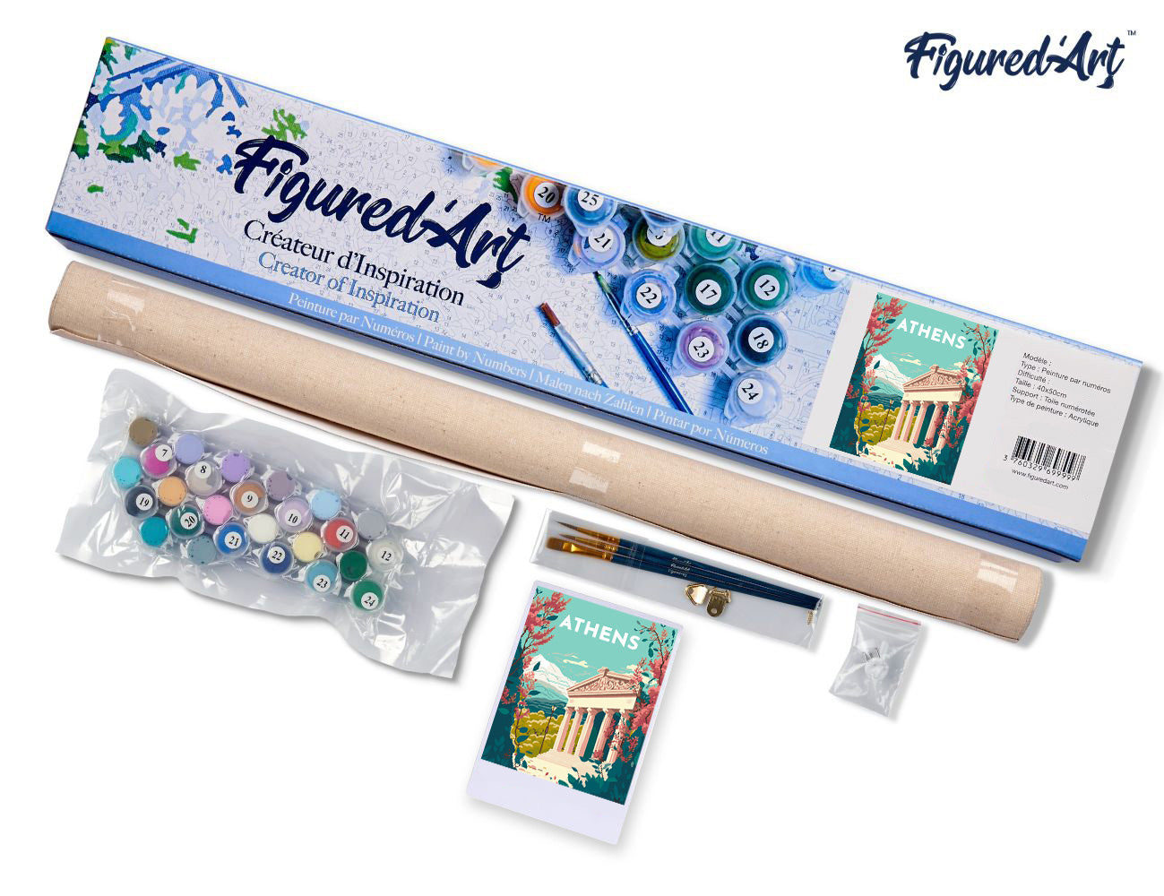 Malen nach Zahlen 40x50cm ohne Keilrahmen Figured’Art Vintage-Poster Athen