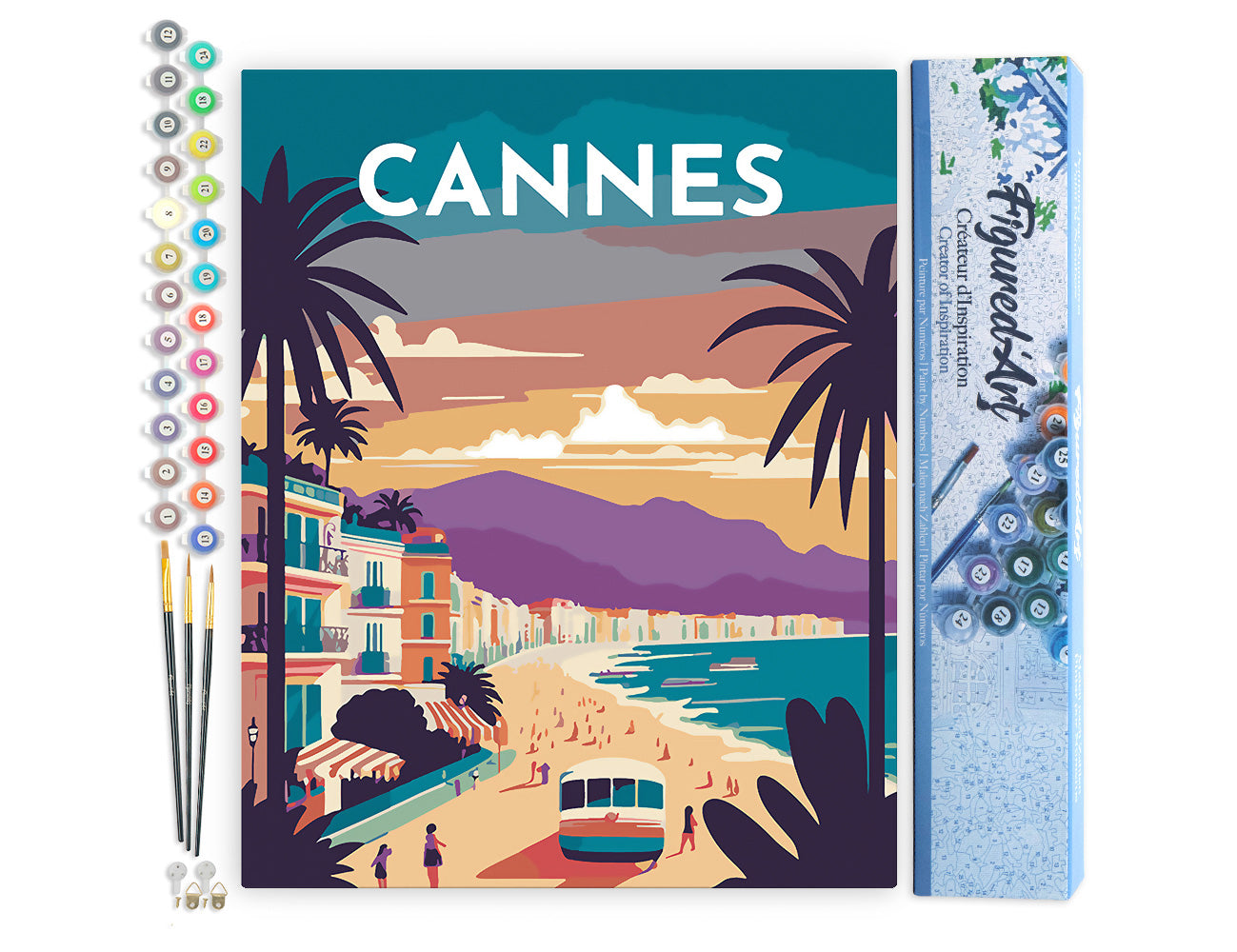 Malen nach Zahlen 40x50cm ohne Keilrahmen Figured’Art Vintage-Poster Cannes