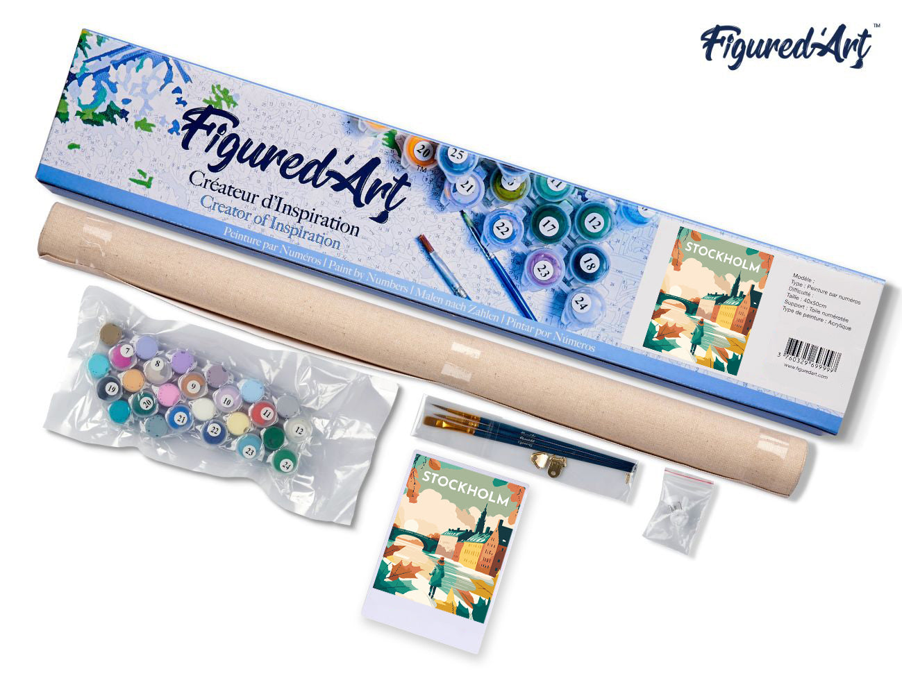 Malen nach Zahlen 40x50cm ohne Keilrahmen Figured’Art Vintage-Poster Stockholm