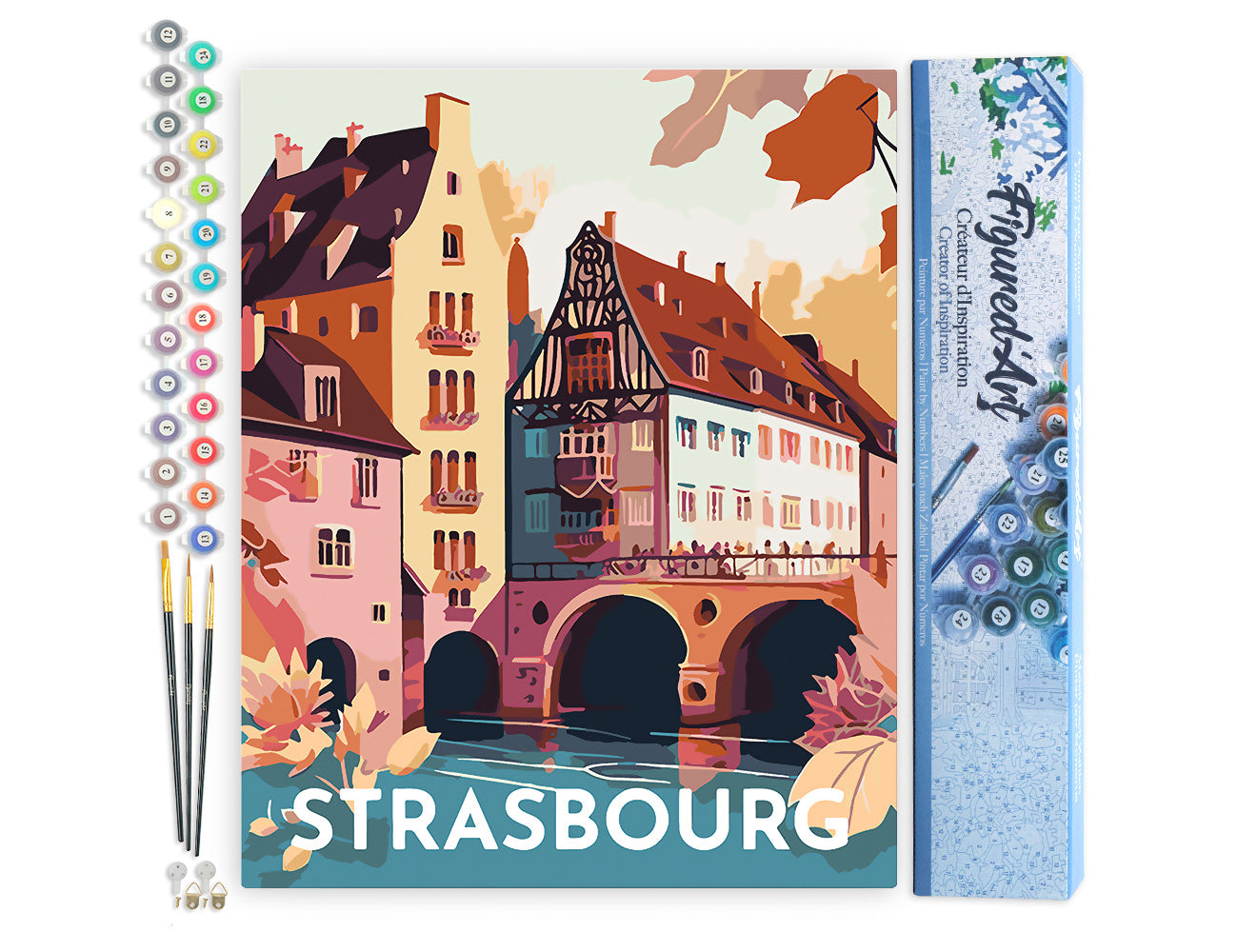 Malen nach Zahlen 40x50cm ohne Keilrahmen Figured’Art Vintage-Poster Straßburg