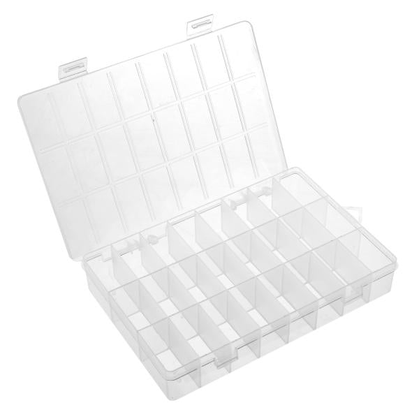 - 24 Fächer zur gezielten Trennung von Knöpfen, Nadeln, Garn und Kleinteilen