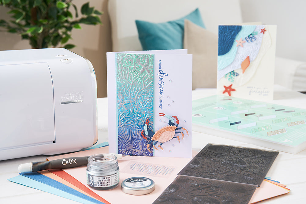 Der 3-D Textured Impressions Prägefolder - Under the Sea von Kath Breen, erhältlich bei Sizzix, bietet eine hochwertige dreidimensionale Struktur für Papierprojekte. Der Prägefolder erzeugt realistische Meeresmotive mit Tiefe, wenn er mit gängigen Präge- und Stanzplatten verwendet wird. Hergestellt aus robustem Kunststoff, liefert er wiederholbare, präzise Ergebnisse für Karten, Scrapbooks und Journaling-Seiten.