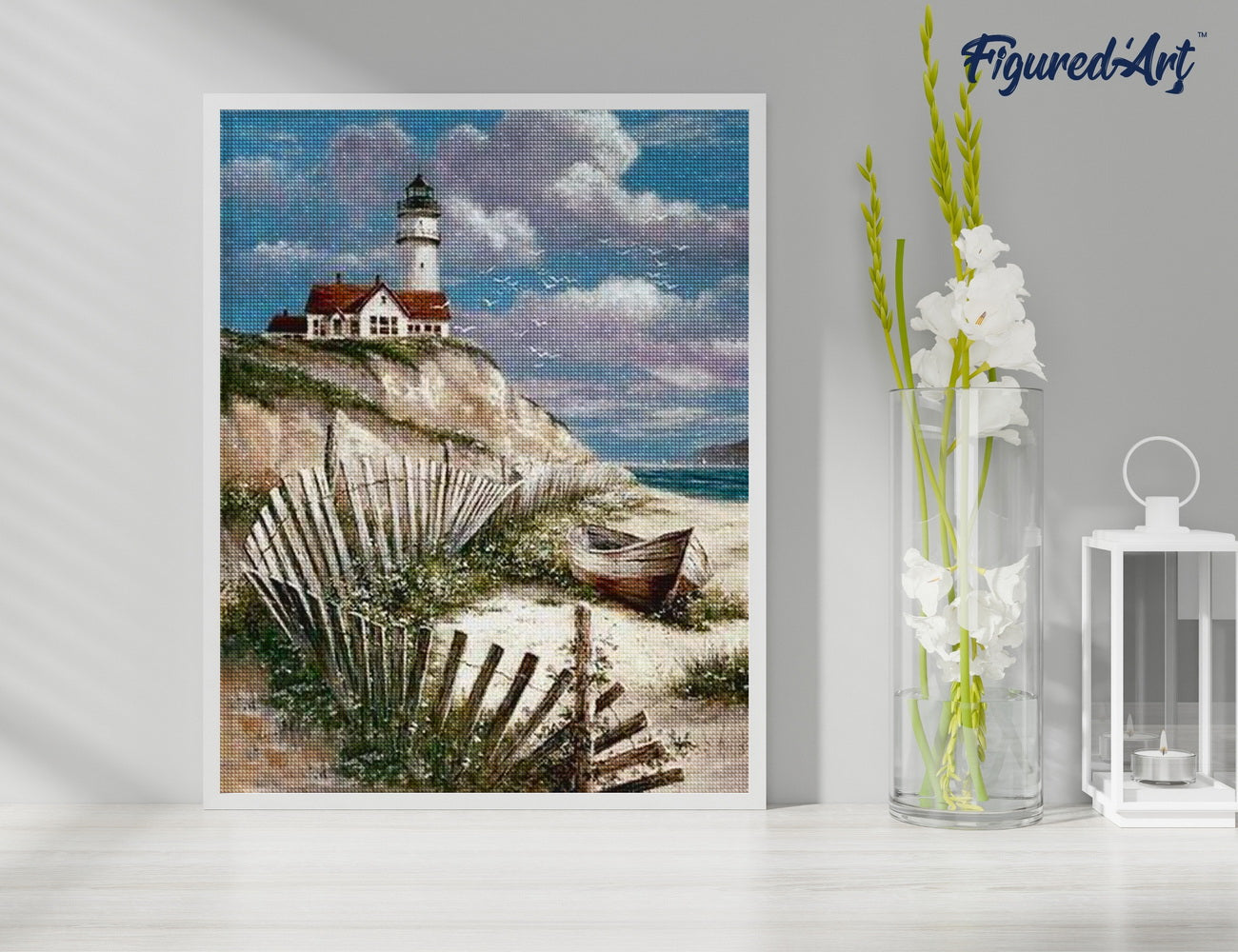 Erleben Sie mit dem Diamond Painting Set von Figured'Art ein entspanntes Kreativerlebnis am Küsten-Motiv „Haus an der Küste“. Diese komplette Zusammenstellung wurde entwickelt, um Ihnen sofort Freude am Diamanten-Stich zu schenken – präzise, farbenfroh und unglaublich beruhigend.