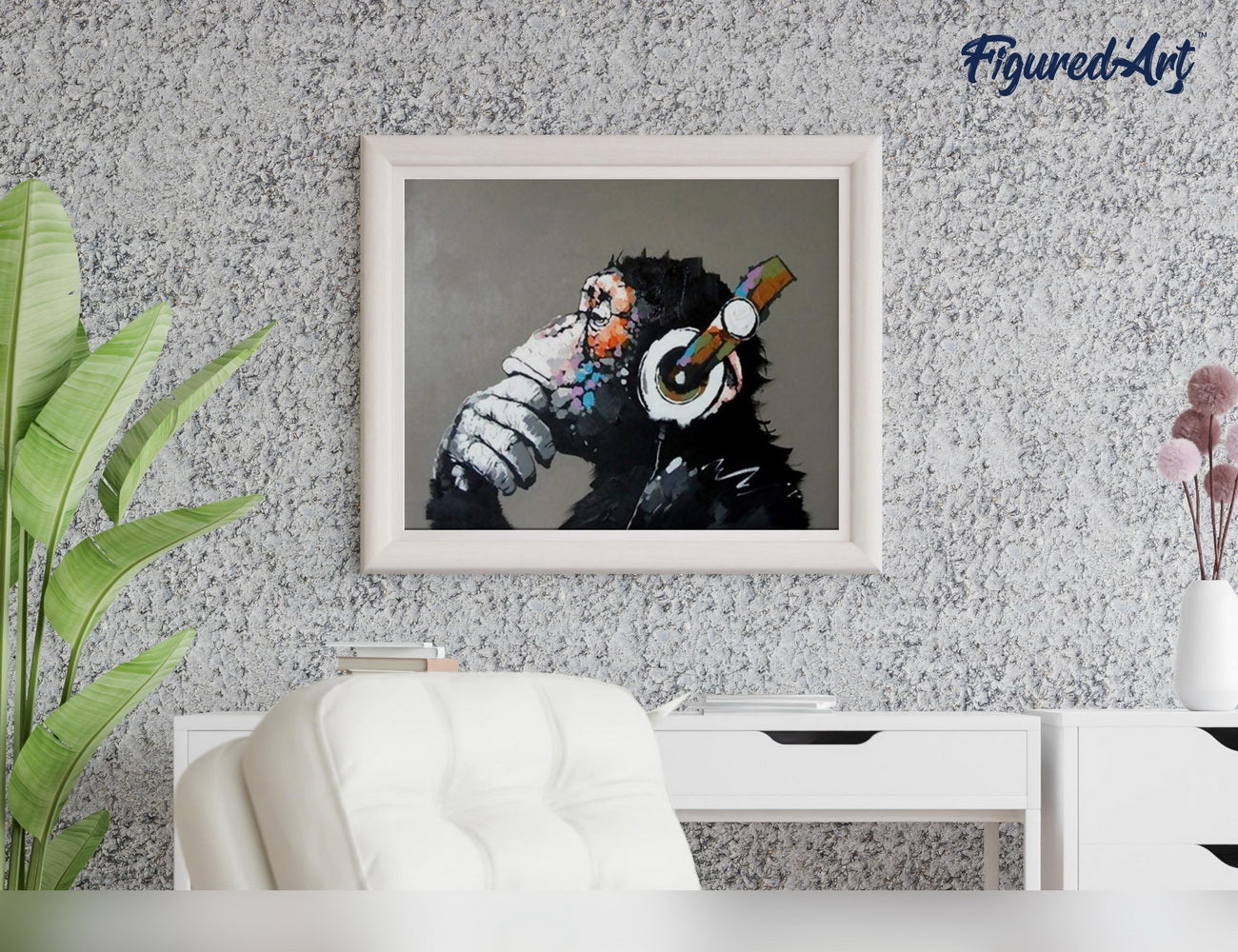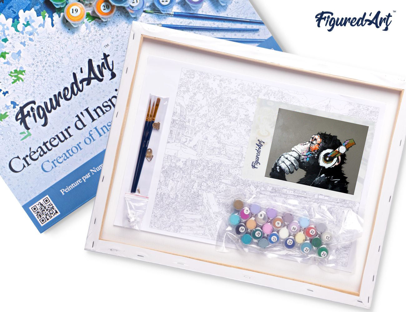 Malen nach Zahlen 40x50cm auf Keilrahmen gespannt Figured’Art Affe mit Kopfhörer