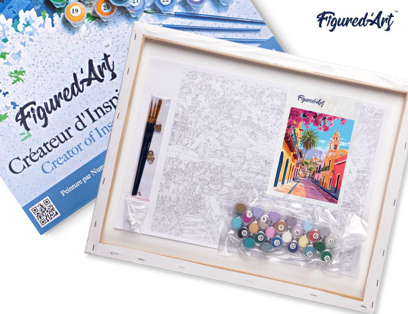 Malen nach Zahlen 40x50cm auf Keilrahmen gespannt Figured’Art Belebte Straße in der Altstadt