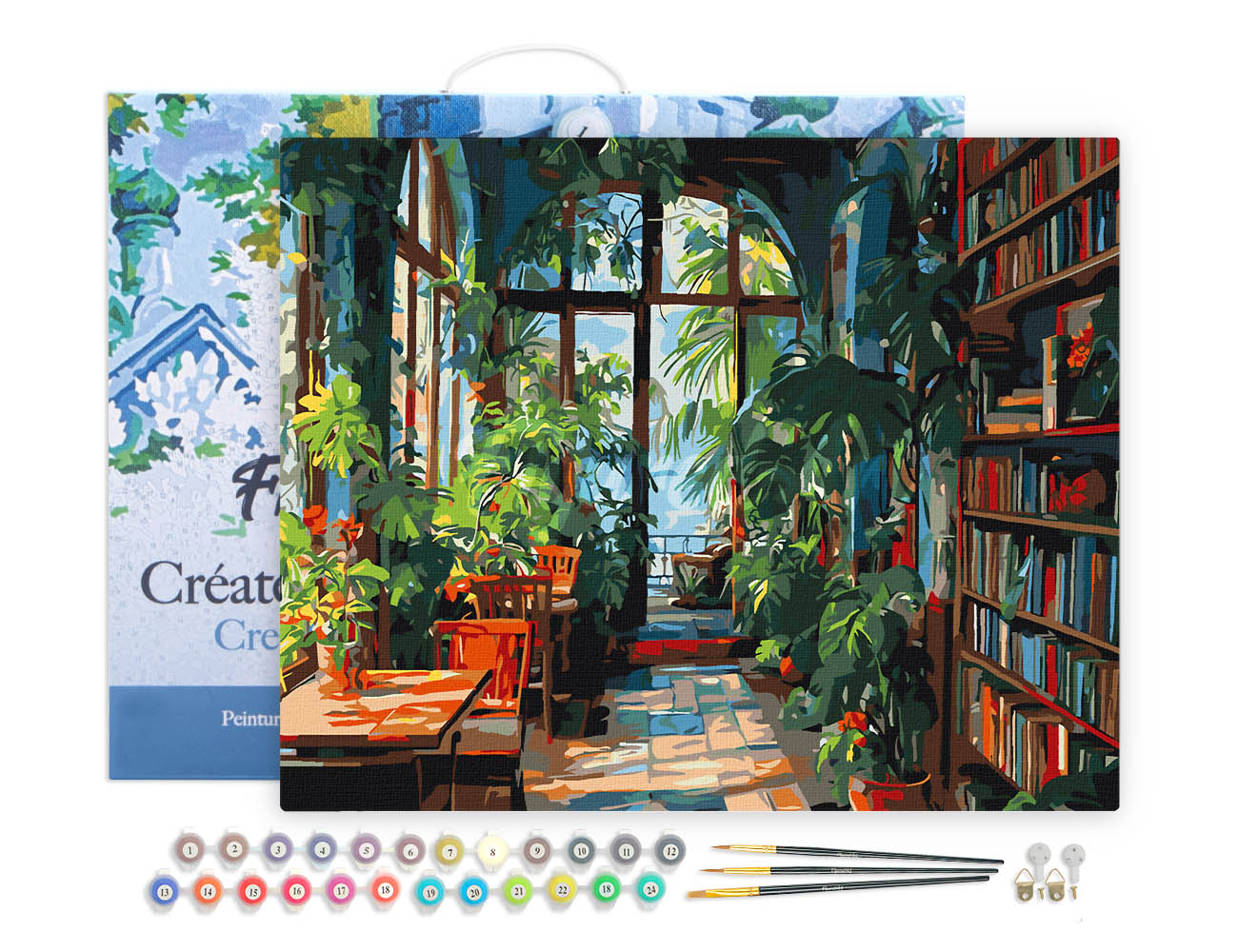 Malen nach Zahlen 40x50cm auf Keilrahmen gespannt Figured’Art Bibliothek im Gewächshaus