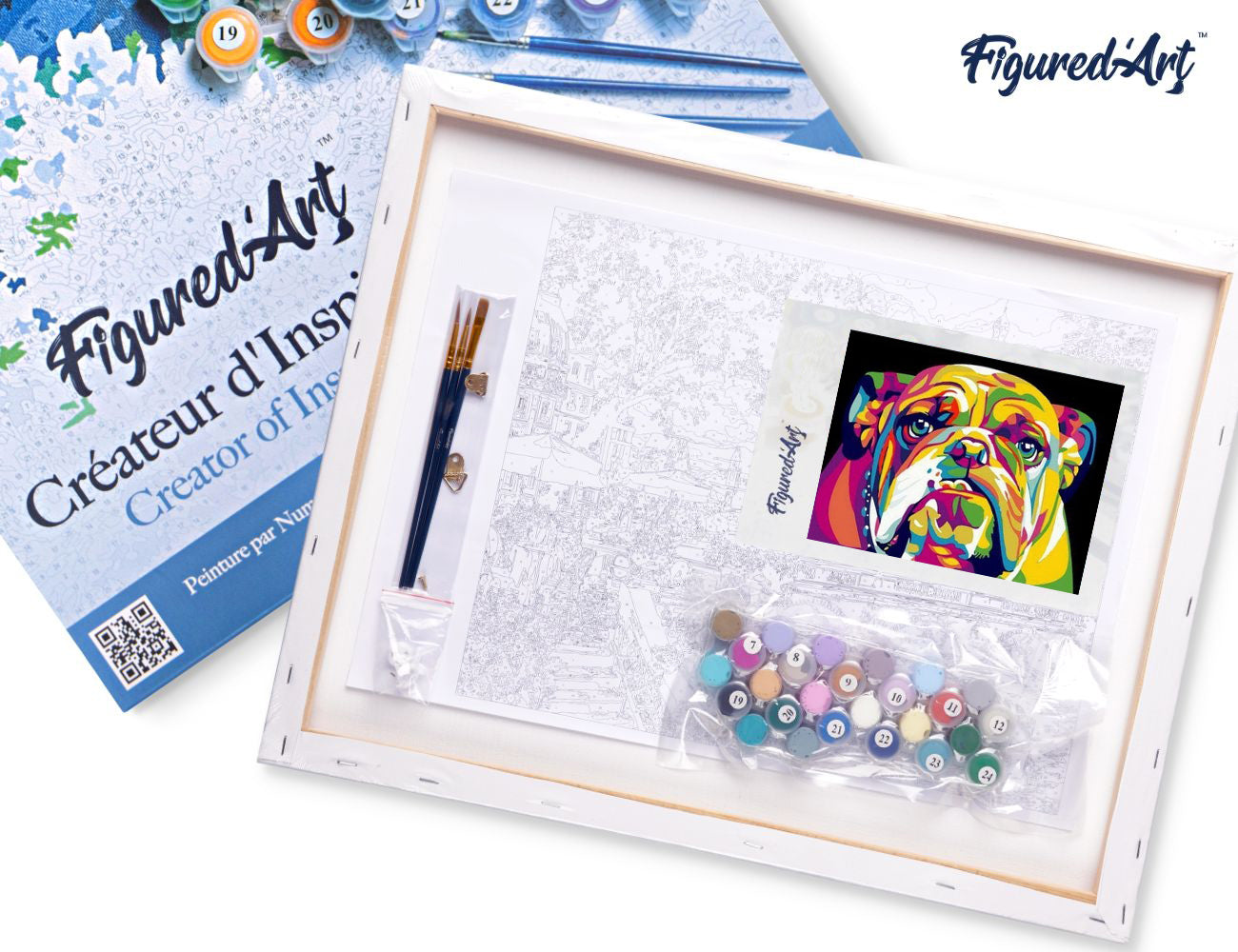 Malen nach Zahlen 40x50cm auf Keilrahmen gespannt Figured’Art Bulldog Pop Art