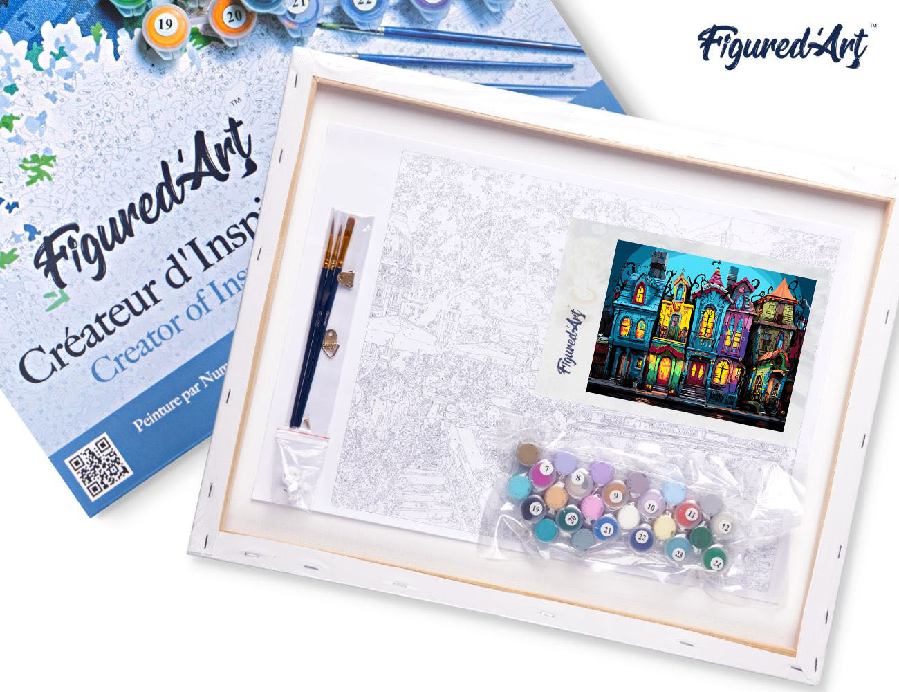 Malen nach Zahlen 40x50cm auf Keilrahmen gespannt Figured’Art Bunte Gotische Häuser