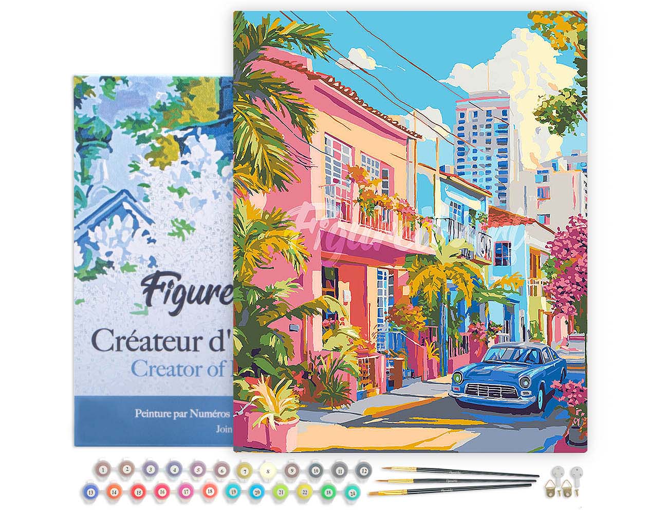 Malen nach Zahlen 40x50cm auf Keilrahmen gespannt Figured’Art Bunte Straße