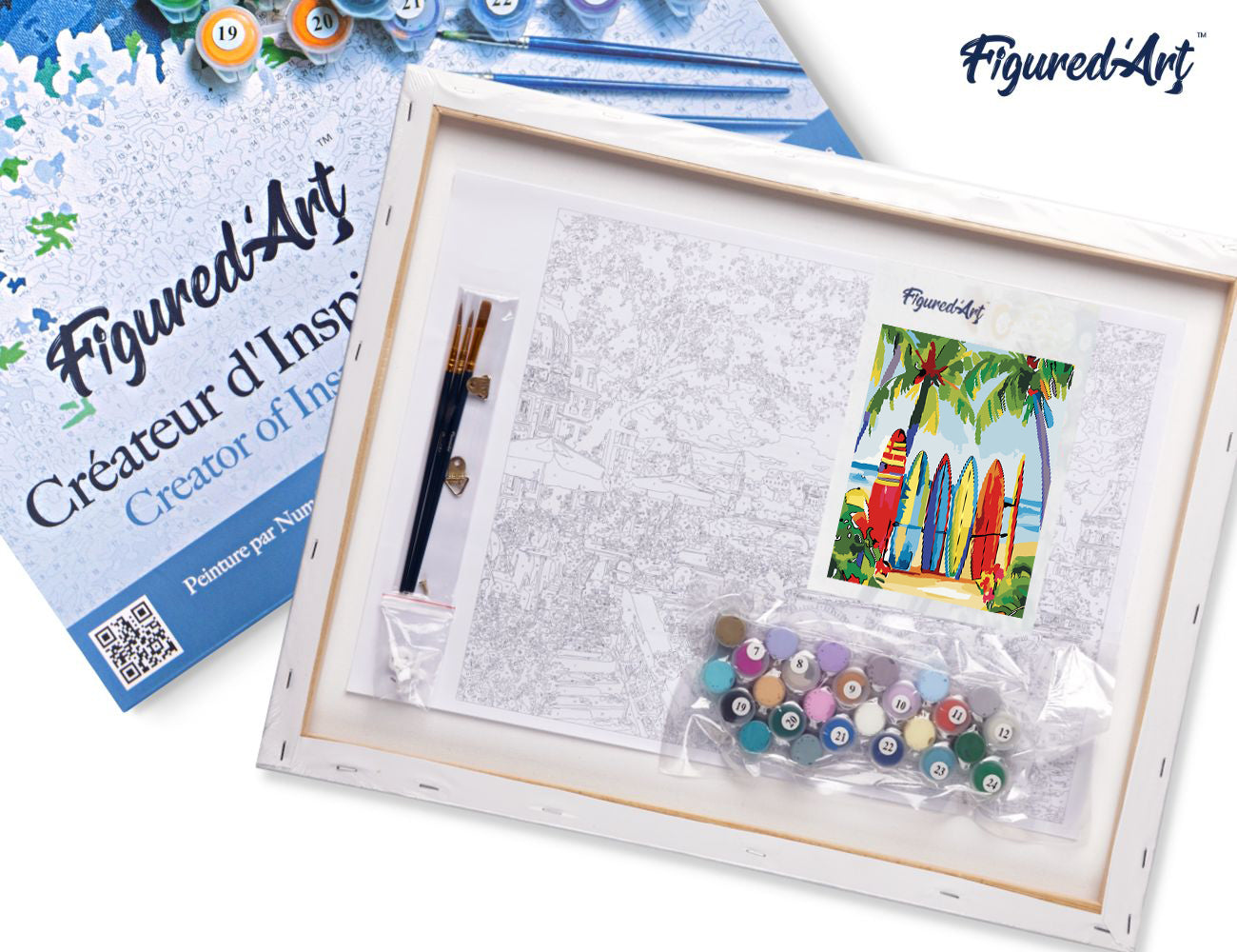 Malen nach Zahlen 40x50cm auf Keilrahmen gespannt Figured’Art Bunte Surfbretter