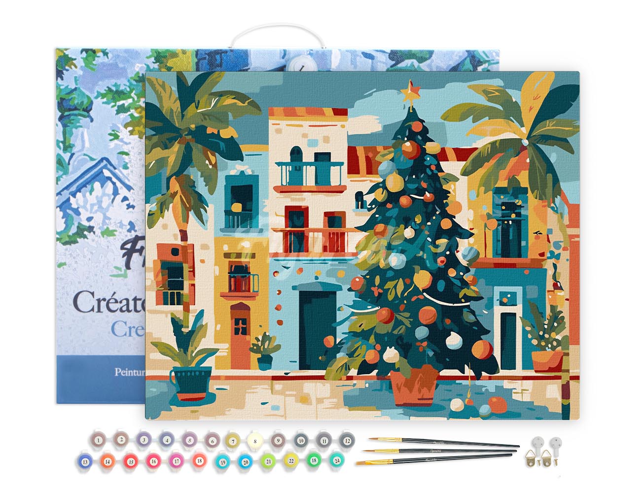 Malen nach Zahlen 40x50cm auf Keilrahmen gespannt Figured’Art Bunter Weihnachtsplatz
