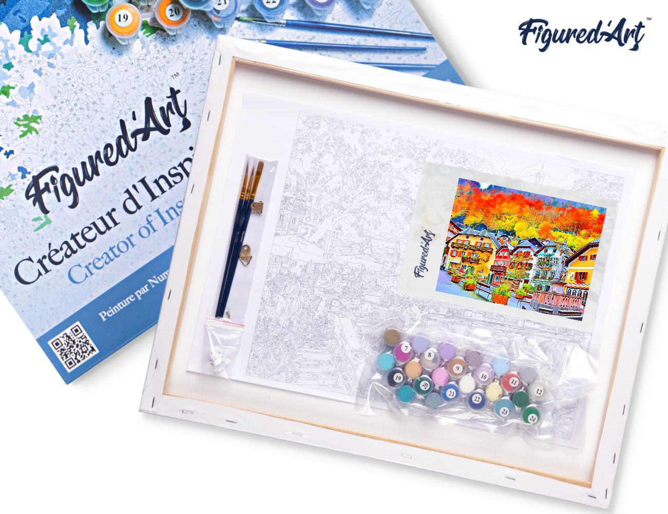 Malen nach Zahlen 40x50cm auf Keilrahmen gespannt Figured’Art Buntes schweizer Dorf