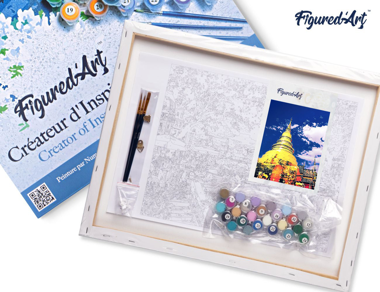Malen nach Zahlen 40x50cm auf Keilrahmen gespannt Figured’Art Chiang Mai Tempel