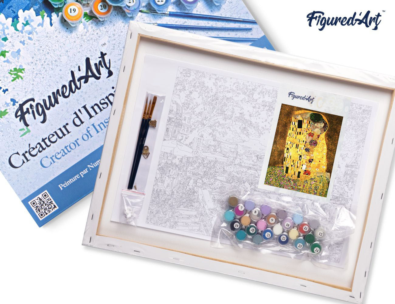 Malen nach Zahlen 40x50cm auf Keilrahmen gespannt Figured’Art Der Kuss – Klimt